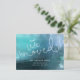 Affordable custom printed moving announcement postcards personalised with your family's new address and contact info. This chic minimalist design features an aqua watercolor background and modern hand-lettered script font. Use the design tools to customise the text, edit the fonts and colours or add your own photos to create a one of a kind new address card for your family or business.