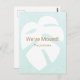 Modern botanical design of large white monstera leaf on aqua blue linen background image.