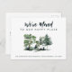We've Moved to Our Happy Place New Address Announcement Postcard... The front of our change of address card features the bold announcement "We've Moved to Our Happy Place" with a mini watercolor green forest just beneath suggesting a move closer to nature than traffic. Additional text on front of the card displays your name and new address in elegant sans serif typography. On the back is all the information your family and friends will need to stay in touch. All text on front and back of the card can be revised very easily on the Personalisation template.