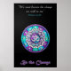 My favourite quote of all time by Mahatma Gandhi. Be the Change. On glossy black with the beautiful purple and turquoise Independence Mandala with a silver OM symbol and a yin-yang at the centre, containing the 12 signs of the zodiac and Universal symbols for peace, energy and balance.