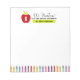 Prepare for going back to school with this notepad. The design features solid colourful graphics of a red apple and a rainbow of crayons. Personalise this notepad with your own grade level and teachers class name. The positive messaging of “We Nurture All The Little Learners” is perfect for any elementary classroom.
