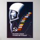 This vintage Soviet space poster features cosmonaut and first man in space, Yuri Gagarin, wearing a spacesuit. It also includes the flags of the countries involved in the Interkosmos space program. It translates, "We are creative, friendly and clever. We’re making Space peaceful forever!" Remember space exploration history with this digitally restored vintage poster from The War Is Hell Store.