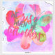 "We Rise When We Lift Others" brightly colored watercolor pink flower with blue green butterfly and purple blue sky background. This is perfect to use as wall decor.