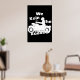 This wall art is for the biker or biker at heart. A graphic of a biker riding a motorcycle is accompanied by the words, "We rule the roads." Buy as is or customise to change the poster colour.