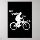This wall art is for the cyclist or cycling enthusiast. A graphic of a bike rider is accompanied by the words, "We rule the roads." Buy as is or customise to change the poster colour.