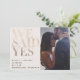 This chic blush and rose gold wedding announcement is a great way to let your friends and family know that you have eloped, had a secret ceremony, or private wedding! The front of the card is designed to showcase your favorite vertical orientation photo, with the words 'We Said Yes' at the left in a faux rose gold, timeless and elegant fashion magazine typography. Your names, wedding date and location appear at the bottom left in a modern, fashion sans serif font. The back of the card allows you to type in a personal greeting, and also features a black and white framed vertical/portrait orientation photo. This is a template design, and is very easy to customize to suit your needs. Thank you so much for supporting our small business, we really appreciate it!