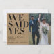 This chic Black & White We Said Yes Rustic Chic 2 Photo Reception Only Invitation is a great way to let your friends and family know that you have eloped, had a secret ceremony, or private wedding, and want to celebrate with them! The front of the card is designed to showcase your favourite vertical orientation photo, with the words 'We Said Yes' at the left in a black, timeless and elegant fashion magazine typography, atop a faux kraft paper background. Your names, wedding date and location appear at the bottom left in a modern, fashion sans serif font. The back of the card allows you to type in a personal greeting with your names, wedding date and location, as well as giving all the details about the reception. It also features a black and kraft framed vertical/portrait orientation wedding photo. This is a template design, and is very easy to customise to suit your needs. Thank you so much for supporting our small business, we really appreciate it!