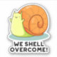 We Shell Overcome Funny Positive Snail Pun features a cute snail encouraging you to stay positve. Perfect pun gift for family and friends who love cute positive snail puns.