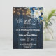 This Wedding Anniversary Invitation has an elegant script calligraphy completed by wonderful blue wood, garden string lights and white blue floral with gold glitter. You can personalize this Invitation with your Wedding Anniversary details.