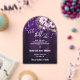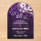 An elegant Wedding Anniversary Save the Date Card with elegant calligraphy completed by wonderful purple wood, garden string lights and white and purple watercolor garden floral. You can personalize this card with your pre-Wedding Anniversary details.