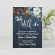 An elegant Wedding Anniversary Save the Date Card with elegant calligraphy completed by wonderful blue wood, garden string lights and white blue floral with gold glitter. You can personalise this card with your pre-Wedding Anniversary details.