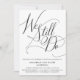 Minimalist Black and White Typography Photo Vow Renewal / Wedding Anniversary Invitation. Design features elegant handwritten script ''we still do'' in black lettering on a white background and party details in capital lettering on the front and black and white photo on the back.