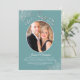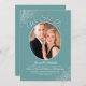This beautiful vow renewal/anniversary party invitation features an elegant script title reading "We Still Do." It has a simple yet elegant design with fancy script lettering on a teal or turquoise coloured background, and your photo in an oval frame surrounded by ornate silver grey faux foil curls and swirls. Great way to invite your family and friends to celebrate your love.