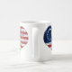 Colourful red, white and blue original 13 state Betsy Ross American flag in the shape of a heart, with the first line from the Preamble of the United States of America Constitution.