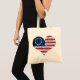 Colourful red, white and blue original 13 state American flag in the shape of a heart, with the first line from the Preamble of the United States of America Constitution.