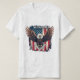 Show your American pride with this bold and patriotic design featuring a bald eagle flying against an American flag backdrop.