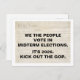 Design background: The background design is the first page of the US Constitution, with We the People at the top and Article 1 (Congress). The text in black sans serif all caps font reads "We the People vote in midterm elections. It's 2026. Kick out the GOP."