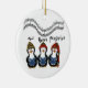 Three penguins singing holiday carols on We Three Penguins keepsake holiday ornaments.