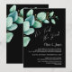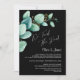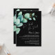 Invite your friends and loved ones to your post-wedding reception with this watercolor green eucalyptus leaves black invitation to celebrate your recent marriage.