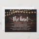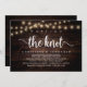 Mark the beginning of your forever with rustic elegance using our cottage and village string lights dark brown wood background themed, wedding elopement celebration invitation card, "We tied the knot". Perfect for couples extending their joyous occasion, this invitation exudes sophistication with a hint of playfulness, setting the stage for a memorable event. Adorned with a timeless modern script design theme, it adds a touch of refined charm to your festivities. Crafted by TeeshaDerrick, this invitation promises to beautifully capture your love story.