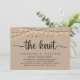 Mark the beginning of your forever with rustic elegance using our cottage and village string lights kraft background themed, wedding elopement celebration invitation card, "We tied the knot". Perfect for couples extending their joyous occasion, this invitation exudes sophistication with a hint of playfulness, setting the stage for a memorable event. Adorned with a timeless modern script design theme, it adds a touch of refined charm to your festivities. Crafted by TeeshaDerrick, this invitation promises to beautifully capture your love story.