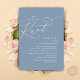 Mark the beginning of your forever with elegance using our contemporary aesthetic dusty blue theme wedding elopement celebration invitation card, "We tied the knot". Perfect for couples extending their joyous occasion, this invitation exudes sophistication with a hint of playfulness, setting the stage for a memorable event. Adorned with a timeless modern script design theme, it adds a touch of refined charm to your festivities. Crafted by TeeshaDerrick, this invitation promises to beautifully capture your love story.