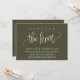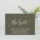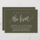 Mark the beginning of your forever with elegance using our contemporary olive green theme wedding elopement celebration invitation card, "We tied the knot". Perfect for couples extending their joyous occasion, this invitation exudes sophistication with a hint of playfulness, setting the stage for a memorable event. Adorned with a timeless modern script design theme, it adds a touch of refined charm to your festivities. Crafted by TeeshaDerrick, this invitation promises to beautifully capture your love story.