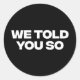 We Told You So 1 Classic Round Sticker