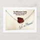 We’ve Moved Watercolor Mail Moving Announcement Postcard. Features customisable calligraphy text in brown burgundy ink for your new name and address, and hand written type text shown in ink blue colour “we’ve moved" on a watercolor hand painted letter with wax seal (with customisable monogram initial) on watercolor texture paper printed front. Back features customisable message in hand written font type, and pale grey lines for writing the recipients address on white. All fonts, colours, text, and images may be customised by you.