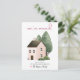 Watercolor illustration of a cute pink house surrounded by trees and plants