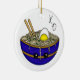 Funny Ramen pun, curly soup noodles with a boiled egg and chopped sticks, Kawaii style cute romantic Christmas ornament for a couple.