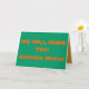 A note card printed on quality paper.A warm green background on the front,text" We will miss you" Inside page in yellow orange background with green text "Good friends are hard to find" Make sure the spare bed is made when we visit"