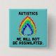 Autistics: We will not be assimilated with a mosaic rainbow flame. Autistic activism from autistart.com.