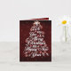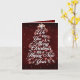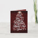We Wish You A Merry Christmas Tree Burgundy. A beautiful dark burgundy background with a Christmas tree lettering that stated " We wish you a Merry Christmas". Pink and gold ornaments and small pink bows adorn the tree with a bright star on top. Edit the inside greeting with your own and edit each family members name below.