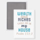 "Wealth and Riches Shall Be in My House" Psalm 112:3 Square Magnet. These beautifully designed magnets are available in three convenient sizes and shapes, making them a perfect addition to any kitchen, office, locker, or magnetic surface. Choose square, rectangle, or a small circle.