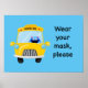 Wear Your Mask Please Monster on School Bus Poster