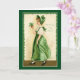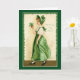 Pretty, vintage picture of a young miss dressed up for St. Pat's Day is featured on this greeting card. Front of card reads, "The Wearing of the Green" and inside of card reads, "May your St. Patrick's Day be filled with many Blessings"! A great way to send those Irish greetings to family and friends.