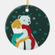 Weasel hugs in Christmas Teal Ceramic Ornament