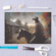 Transform furniture and commercial spaces with our premium ranch scene decoupage paper. This contemplative design features a cowboy approaching a weathered barn at dusk with artistic paint splatter frames. This design creates an elegant focal point perfect for country homes, western establishments, or farm-inspired spaces.