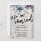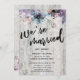 This suite's distinction is due to the modern, handwritten script font used for accent phrases, along with modern, artistically-rendered watercolor wild flowers. Behind the lights are clusters of sparkling, twinkling lights which are a subtle, festive addition. The lights remain at the top on the back, with additional flowers on the bottom of the card's reverse side. These elements have been placed over a weathered grey board background, providing a rustic, boho feel to the design. In this card, the hand-lettered script font was used to create a graphic depicting the words "we're married". Use the template fields to add your personal details and make this unique, modern design your own. All layers were added separately to give you the most design control. Please reach out with any special requests or for customising assistance. // 100 //