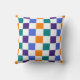 Weathered Chequerboard Orange, Teal, Blue, Purple Cushion