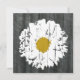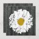 A wedding invitation featuring a background of barnwood on front and back. Front features an illustration of a daisy with the effect of cracked paint. Opposite side featuers matching white cracked paint square. Personalise with details of your event. Wording is from bride and groom together with parents.