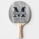 Weathered Dark Gray Wooden Monogram & Name Overlay Ping Pong Paddle