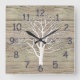 Weathered Driftwood with Tree Artwork Square Wall Clock