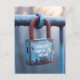 Weathered Love Padlock on Rusty Fence Postcard
