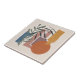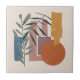 This simple and elegant boho influenced design is weathered and distressed shapes with two plan t stalks in earthy shades of orange, brown, green, and blue.