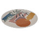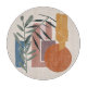 This simple and elegant boho influenced design is weathered and distressed shapes with two plan t stalks in earthy shades of orange, brown, green, and blue.