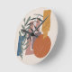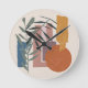 This simple and elegant boho influenced design is weathered and distressed shapes with two plan t stalks in earthy shades of orange, brown, green, and blue.