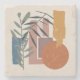 This simple and elegant boho influenced design is weathered and distressed shapes with two plan t stalks in earthy shades of orange, brown, green, and blue.