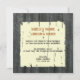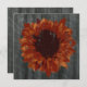 An autumn wedding invitation featuring a background of barnwood on front and back. Front features an illustration of an orange flower with the effect of cracked paint. Opposite side features matching off white cracked paint square. Personalise with details of your event. Wording is from bride and groom.